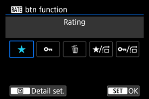 Funkcije ocenjevanja slike/zaščite/brisanja ali iskanja ocenjenih ali zaščitenih slik lahko določite gumbu .