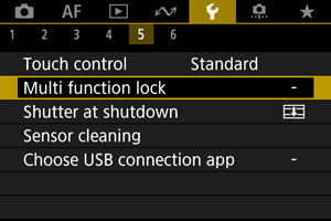 Določite krmilnike fotoaparata, ki bodo zaklenjeni z omogočeno funkcijo zaklepa več funkcij. Tako lahko preprečite nenačrtovano spremembo nastavitev.