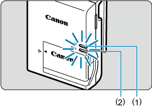 - Ko je baterija popolnoma napolnjena, se indikator polne napolnjenosti (2) prižge v zeleni barvi.