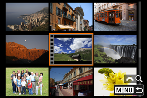 - Med prikazom indeksa perforacija na levem robu slike označuje, da ste izbrali film. Ker filmov ni mogoče predvajati prek zaslona z indeksom, pritisnite gumb