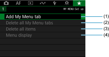 Delete all My Menu tabs/Izbris vseh polj v meniju Moj meni