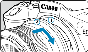 - Poravnajte rdeči montažni znak na objektivu z rdečim montažnim znakom na fotoaparatu in namestite objektiv.