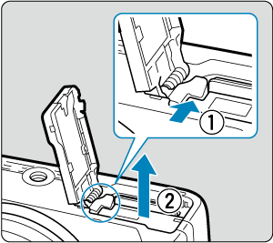 Potisnite zaklep pokrova predela za baterijo/kartico in odprite pokrov.