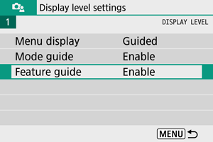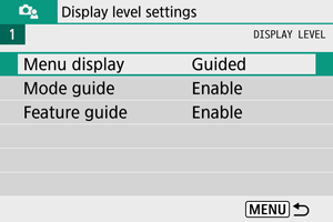 prikaže samo zaslon z menijem. Privzeta nastavitev je [Guided/Z vodičem].