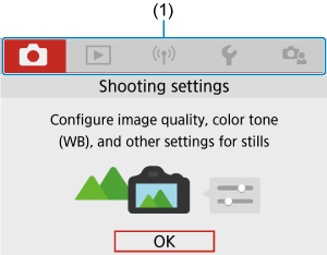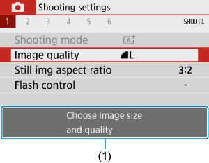 Če uporabite hitri krmilnik ali nastavitve menija, lahko prikažete kratek opis funkcij in nastavitvenih postavk. Privzeta nastavitev je [Enable/Omogoči].