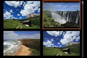 - Odpre se prikaz indeksa s 4 slikami. Izbrana slika je poudarjena z oranžnim okvirjem. S ponovnim pritiskom na gumb