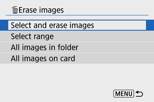 : Izbris slik], bodo izbrisane vse slike v mapi ali na kartici.