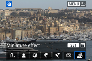 - Za [Miniature effect/Učinek miniature] z vrtenjem regulatorja