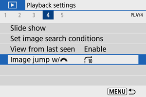 - Z izbrano funkcijo [Jump images by the specified number/Preskok skozi izbrano število slik] lahko z vrtenjem regulatorja