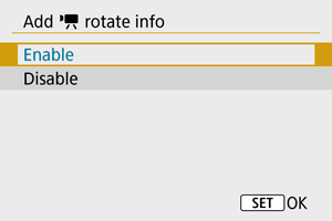 Za filme, ki jih snemate s fotoaparatom, ki ga držite navpično, lahko nastavite samodejno dodajanje podatka o tem, katera stran je zgoraj, in tako omogočite predvajanje v isti usmerjenosti na pametnem telefonu ali drugih napravah.