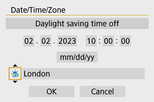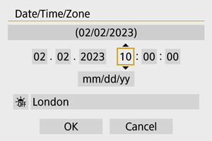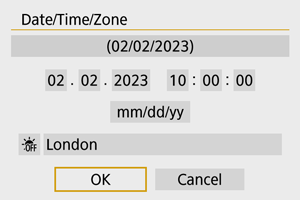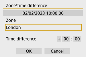 - Po spremembi nastavitve [Zone/Time difference/Časovni pas/Časovna razlika] preverite, ali sta datum/čas pravilno nastavljena.