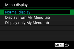 Izberete lahko [Menu display/Prikaz menija] in nastavite zaslon menija, ki bo prikazan prvi, ko pritisnete na gumb .