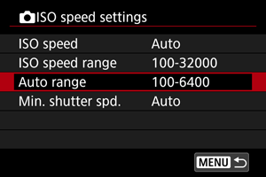 - Nastavitev je možna tudi na zaslonu [ISO speed/Občutljivost ISO] v [