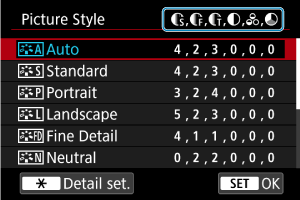- Ko je izbrano [Picture Style/Stil slike], pritisnite