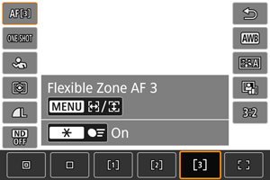 - Pri možnosti Flexible Zone AF/Fleksibilno območje AF je prikazan izbran okvir za Zone AF/Območno AF.