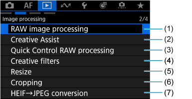 - (3) Quick Control RAW processing/Obdelava slike RAW s hitrim krmilnikom