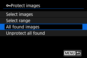 - Za preklic zaščite izberite [Unprotect all images in folder/Preklic zaščite za vse slike v mapi] ali [Unprotect all images on card/Preklic zaščite za vse slike na kartici].