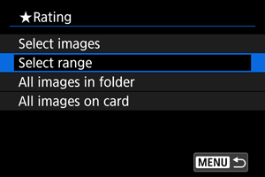 : Ocenjevanje ] izberete [All images in folder/Vse slike v mapi] ali [All images on card/Vse slike na kartici], bodo ocenjene vse slike v mapi ali na kartici.