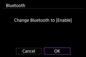 - Če je fotoaparat že povezan v par z drugo napravo, se prikaže sporočilo. Izberite [OK] in zaključite trenutno povezavo Bluetooth.