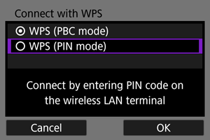 - Povezovanje je lahko težje, če je v bližini aktivnih več dostopnih točk. V tem primeru se poskusite povezati z možnostjo [WPS (PIN mode)/WPS (Način PIN)].