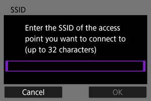 - V nastavitvah Wi-Fi druge naprave izberite geslo SSID (ime omrežja), ki je prikazano na zaslonu fotoaparata, in vpišite geslo.
