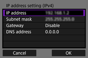 Izberite metodo nastavitve naslova IP, nato nastavite naslov IP na fotoaparatu.
