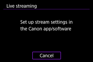 - Za začetek in ustavitev pretakanja uporabite aplikacijo Camera Connect. Pretakanje lahko začnete ali ustavite tudi s pritiskom na gumb za snemanje filma na fotoaparatu.