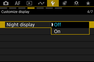 Zamenjajte barvo podatkov na zaslonu in na zaslonu z menijem z barvo, ki je primerna za fotografiranje/snemanje v temnem okolju.