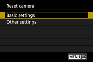 , nato izberite [OK] (toda upoštevajte, da možnost (2) obnovi privzete nastavitve fotoaparata).