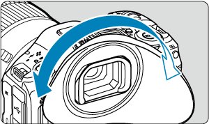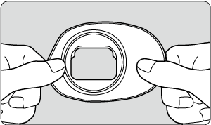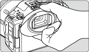 - Ko je očesna školjka ER-kE popolnoma vstavljena, pritisnite njen spodnji del v smeri proti fotoaparatu.