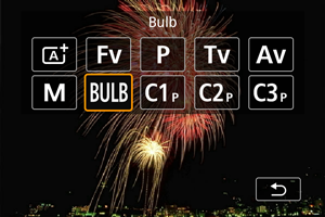 Upoštevajte, da lahko časovnik za dolgo osvetlitev nastavite samo oz. bo deloval samo v načinu [BULB] (dolga osvetlitev).