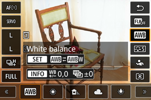 - Izberite nastavitveno postavko [White balance/Izravnava beline].