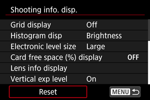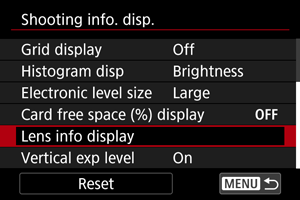 Izberite [Lens info display/Prikaz podatkov o objektivu].