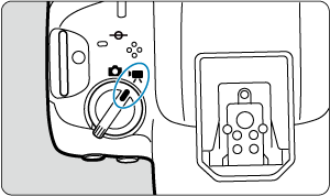 Za pripravo na snemanje filma nastavite stikalo za fotografiranje/snemanje filma na , nato pritisnite gumb