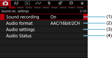 Sound-rec. settings/Nastavitve snemanja zvoka