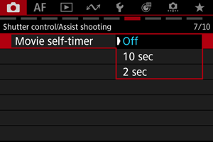 ], fotoaparat zapiska in prikaže število preostalih sekund pred začetkom snemanja.