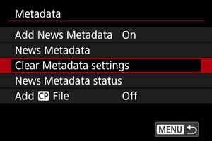 Izberite [Clear Metadata settings/Izbris nastavitev metapodatkov].