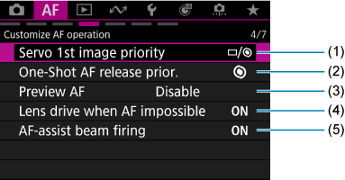 Customize AF operation/Prilagajanje delovanja samodejnega ostrenja (AF)