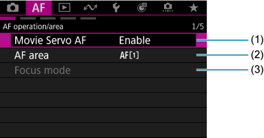 - Če uporabljate objektive brez stikala za način ostrenja, je [Focus mode/Način ostrenja] prikazano na polju [
