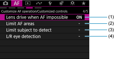 Customize AF operation/Customized controls/Prilagajanje delovanja samodejnega ostrenja (AF)/Prilagojeni krmilniki