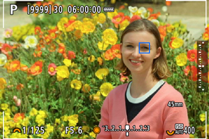 - Položaj območij za AF in točk, ko se sledenje zaustavi po pritisku na gumb zaklopa do polovice ali do konca, ustreza položaju okvirja za sledenje med sledenjem. Položaj območij za AF in točk, ko se sledenje zaustavi med pripravljenostjo na fotografiranje, ustreza položaju pred začetkom sledenja.
