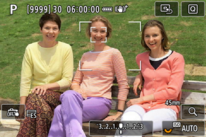 Posnetek lahko zajamete z očmi osebe v gorišču, tako da nastavite [: Eye detection/
