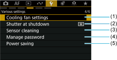 - Možnost [Cooling fan settings/Nastavitve ventilatorja za hlajenje] je prikazana, če je nameščen ventilator za hlajenje CF-R20EP (v prodaji posebej).