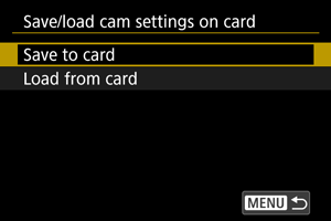 : Shranjevanje/prenos nastavitev fotoaparata na kartico] ().