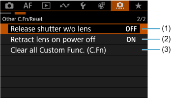 Z izbiro [: Clear all Custom Func. (C.Fn)/
