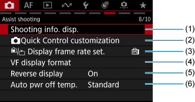 - (6) OVF sim. view assist/Pomoč pri ogledu simulacije z optičnim iskalom