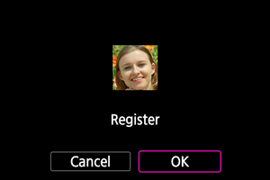 - Fotoaparat shrani slike obrazov in z njimi povezane informacije, ki so registrirane z uporabo te funkcije. Preden predate fotoaparat na uničenje ali ga posodite ali predate drugi osebi, izbrišite vse registrirane podatke iz fotoaparata.