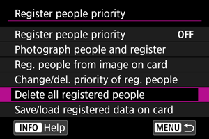 : Ponastavitev fotoaparata] izbrišete tudi podatke za vse registrirane ljudi.