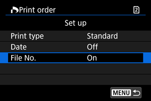 Št. datotekeOn/Vklop Nastavitev [On/Vklop] odtisne številko datoteke. Off/Izklop -