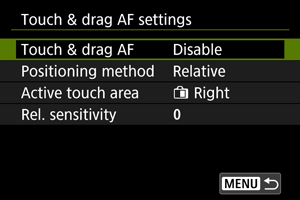 Z nastavitvijo [Positioning method/Metoda določanja položaja] na [Relative/Relativno] lahko določite dolžino premika v odziv na dotik ali vlečenje.